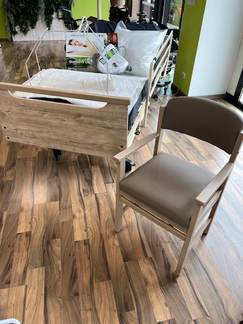 C'est une chaise élégante et confortable. Elle s'accorde parfaitement avec les panneaux de lit que nous mettons en location.