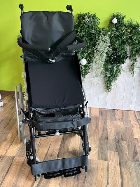 Grâce à son système de verticalisation intégré, ce fauteuil permet de passer facilement de la position assise à la position debout en toute sécurité et sans transfert.