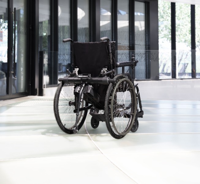 C'est une motorisation légère et amovible destinée à tous les utilisateurs occasionnels ou permanents de fauteuils roulants manuels.